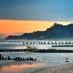De 1-slaapkamer Holiday House Jaros Awiec Near Tropicana Park Jarosławiec villa is binnen 18 minuten te voet van de Jarosławiec Light House gelegen en biedt fietsen en vissen voor actieve gasten. Dit vakantiehuis ligt op 4 km van de Plaża Wicie en beschikt over een terras met uitzicht op de tuin.